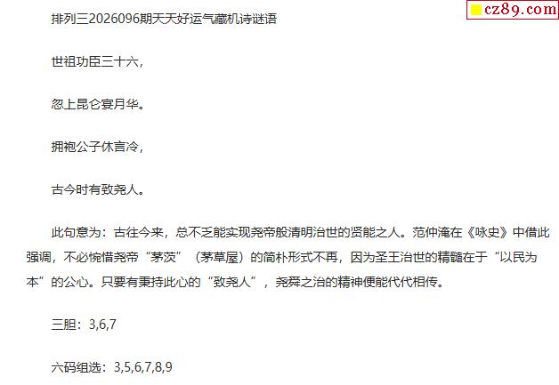 体彩排三2026年100期 一品公子天机诗