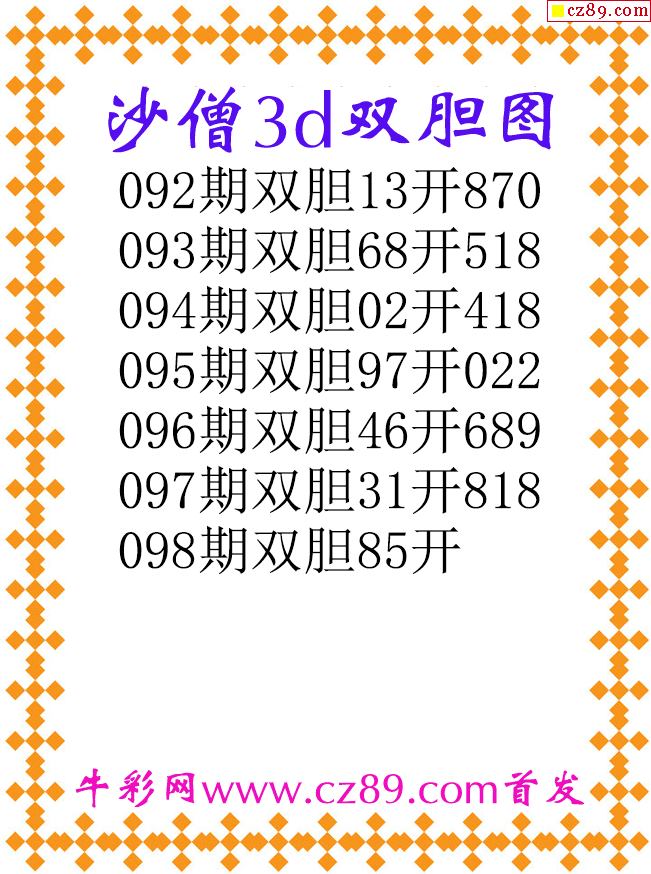 沙僧双胆26098期3d原创图谜