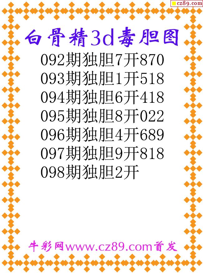 白骨精独胆26098期3d原创图谜