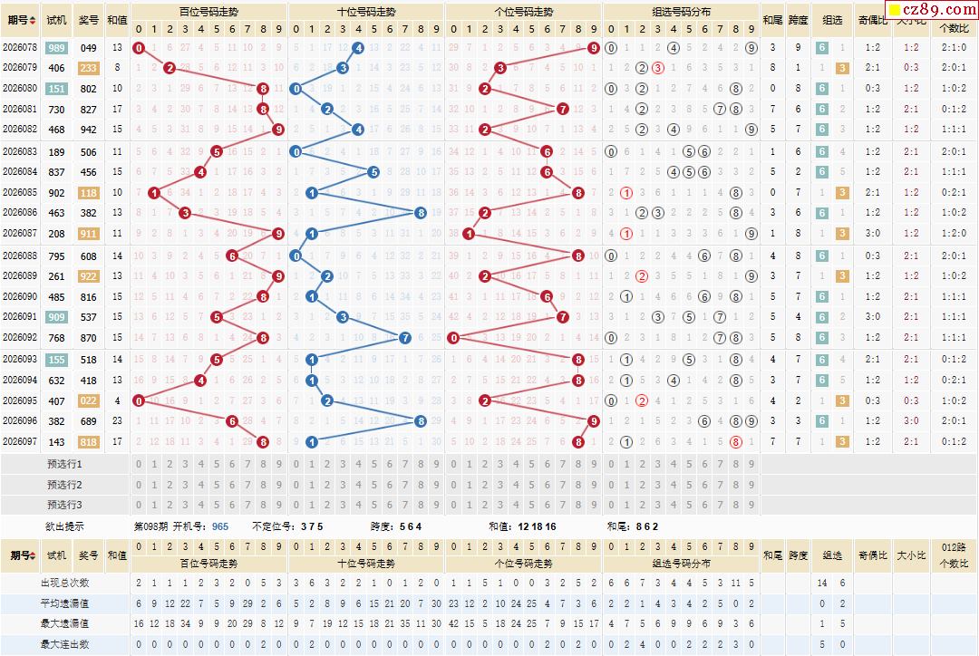 26年098期彩宝贝专家福彩3D杀号定码图表