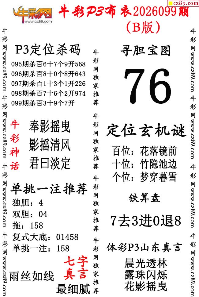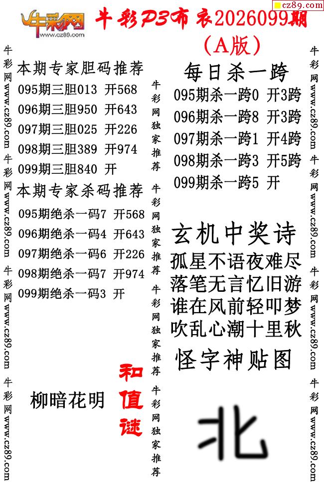 牛彩P3布衣26年099期AB版图谜(精华版)