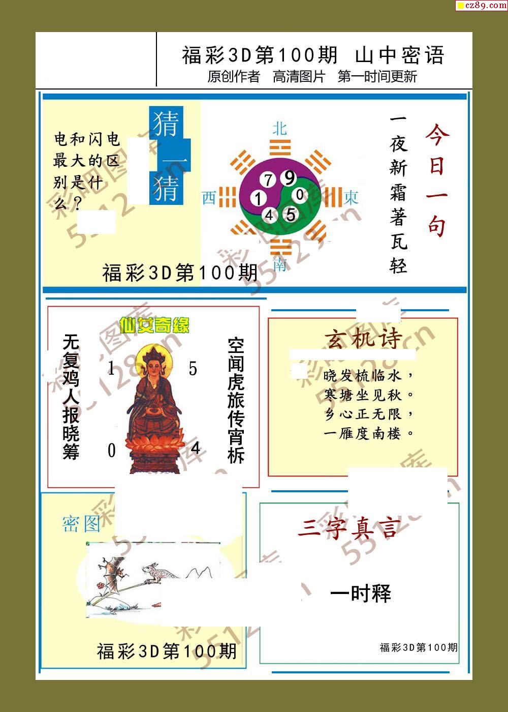 福彩3d26年100期山中密语彩报