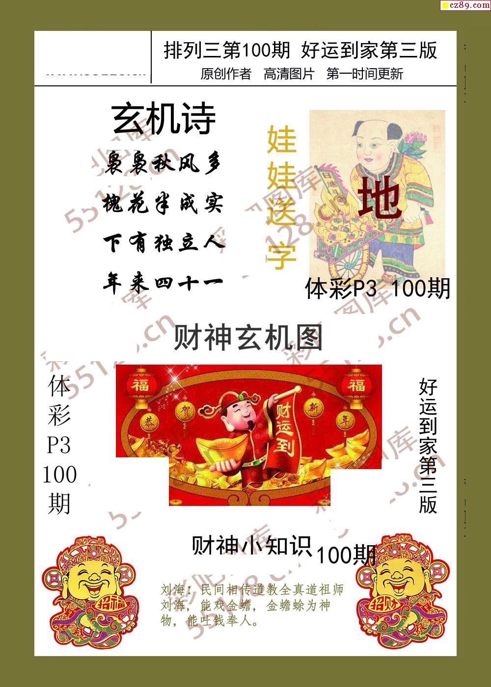 2026年100期牛彩网体彩P3画迷图谜汇总分享