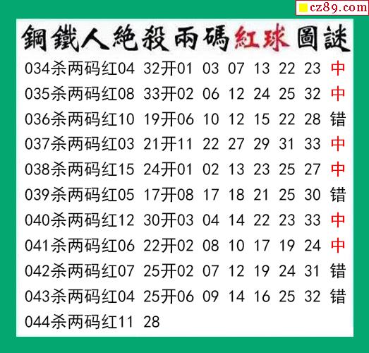 钢铁人杀两码红球044期双色球图谜 10中6