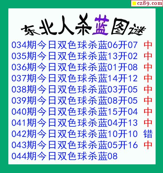 双色球044期 玩彩人杀三蓝图谜 10中8