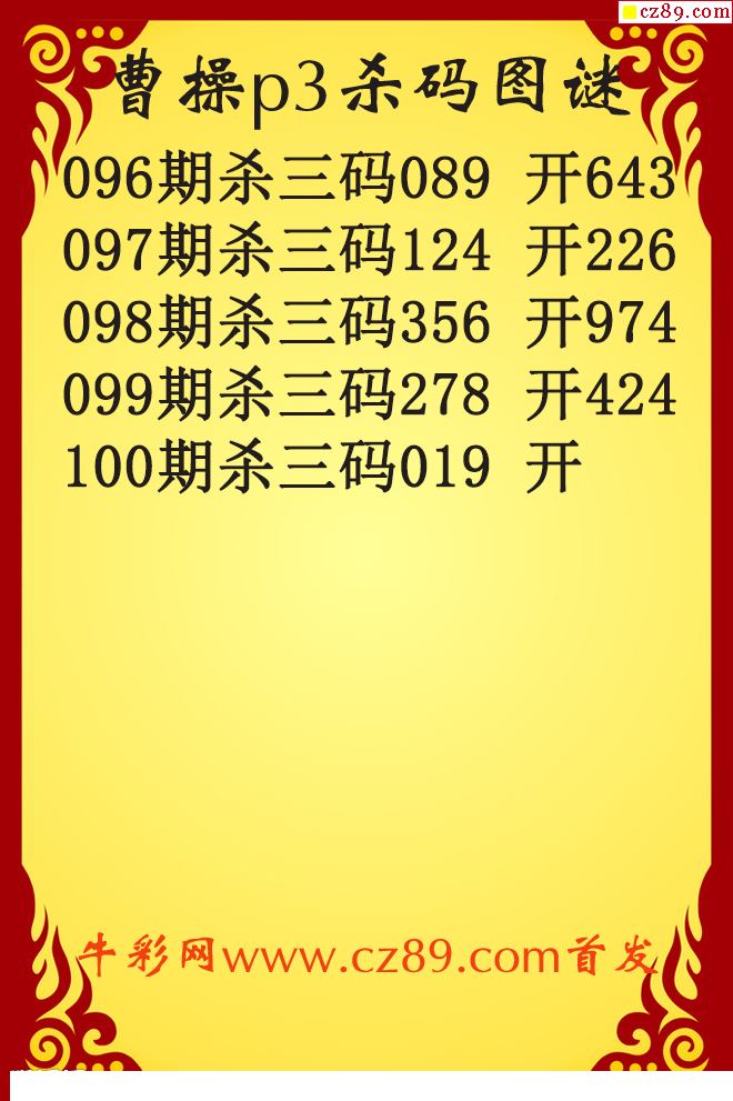曹操杀码26100期p3原创图谜