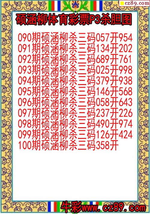 26年100期刘绍棠体彩排三杀码图