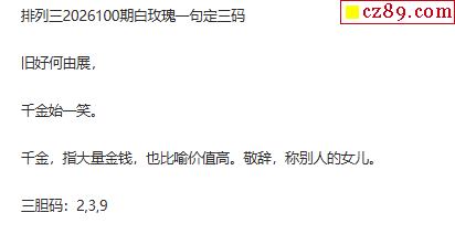 白玫瑰排三一句定三码26年100期