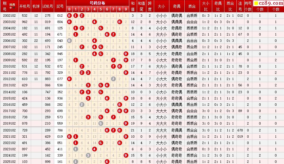 第102期福彩3D历史同期对比