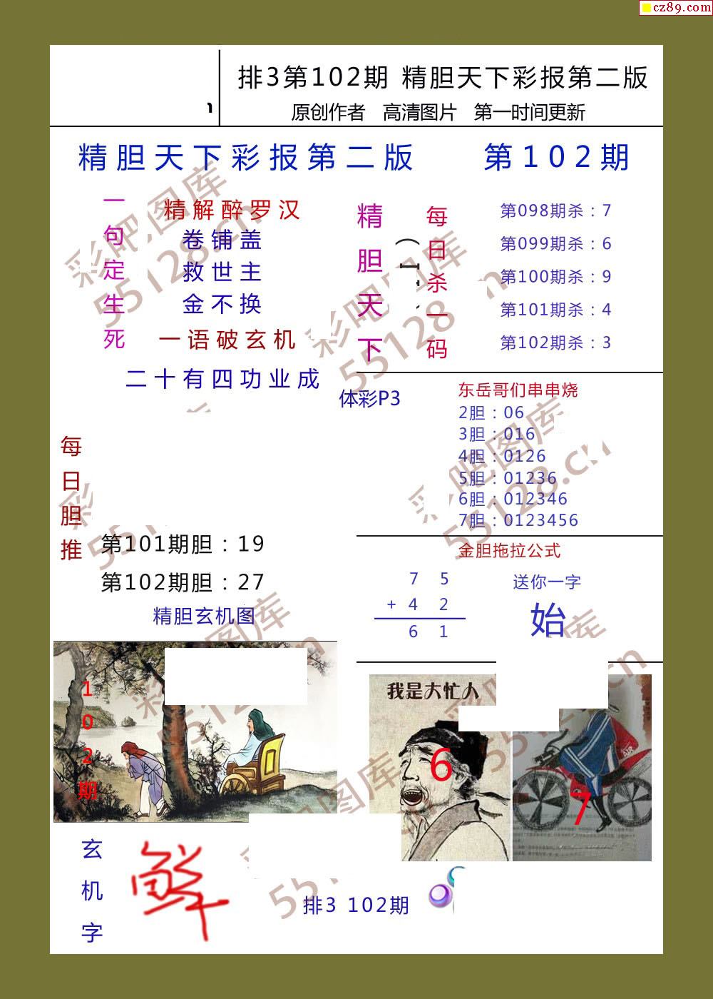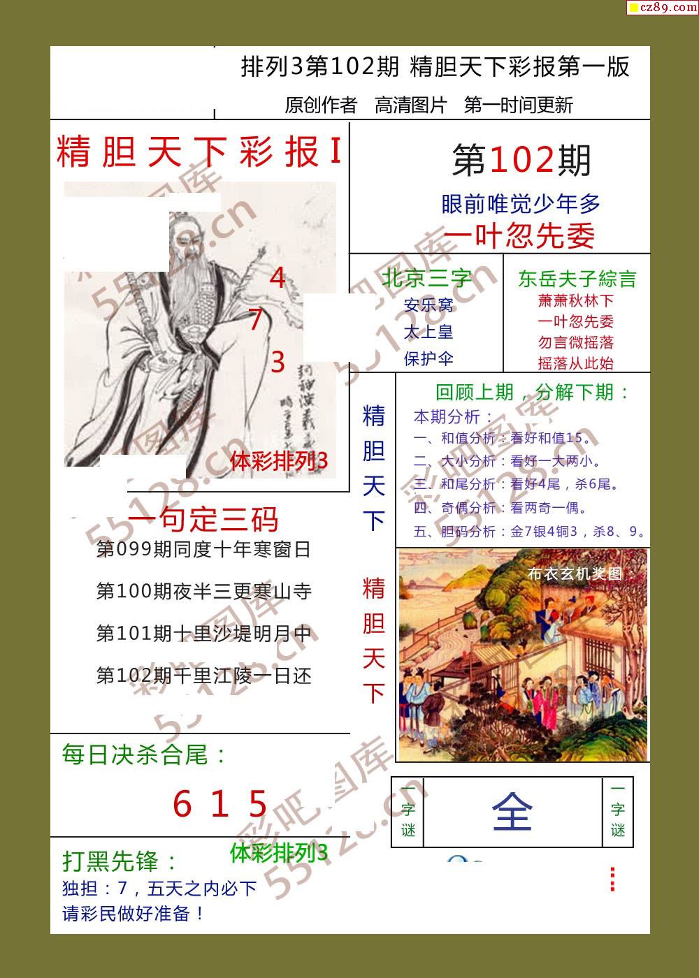 精胆天下彩报102期体彩p3图谜