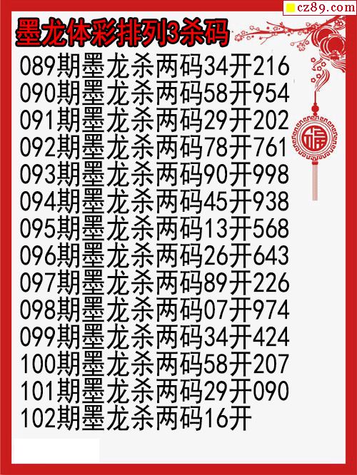 26年102期墨龙体彩排列3杀码图