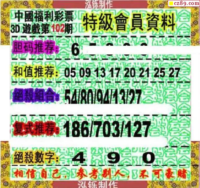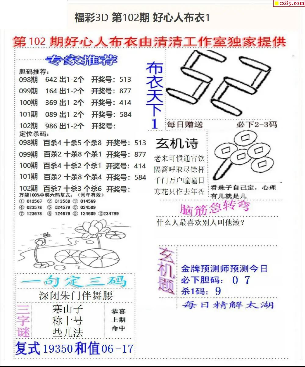 2026102期3d图谜汇总(五)