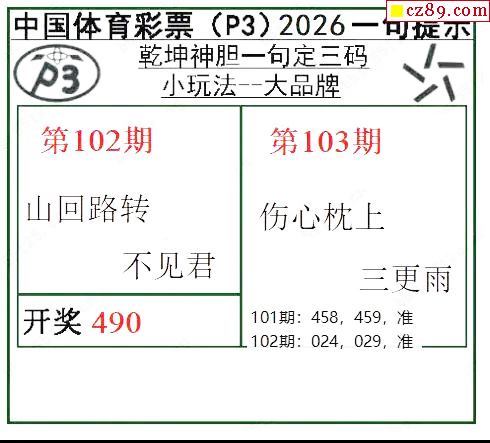 2026年103期牛彩网体彩P3画迷图谜汇总分享