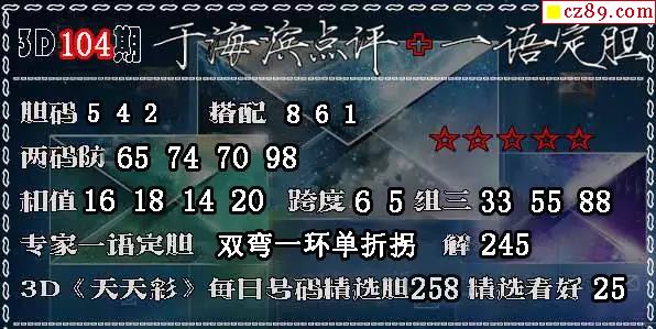 3D预测: 3D胆码预测 3D杀码预测 标签:于海滨点评 于海滨一语定胆 胆码 5 4 2 搭配 8 6 1 两码防65 74 70 98 和值16 18 14 20跨度6 5组三33 55 88 专家一语定胆 双弯一环单折拐 解245 3D 《天天彩》每日号码精选胆258 精选看好25 发布时间:2026-04-23 21:56