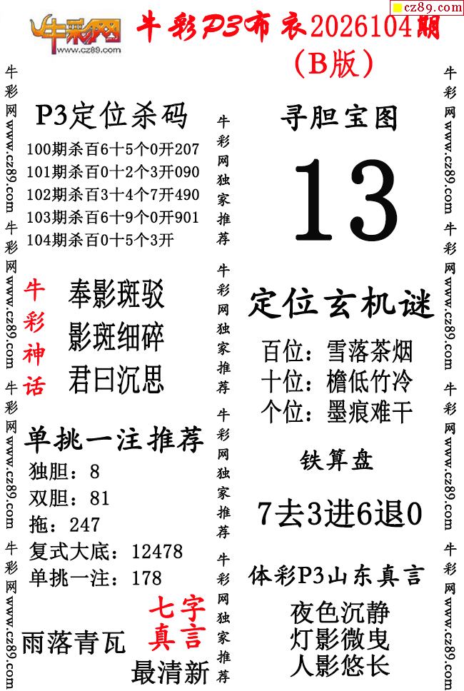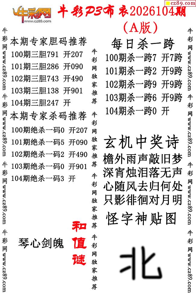牛彩P3布衣26年104期AB版图谜(精华版)