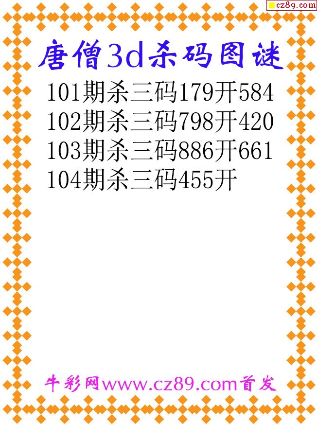 唐僧杀码26104期3d原创图谜