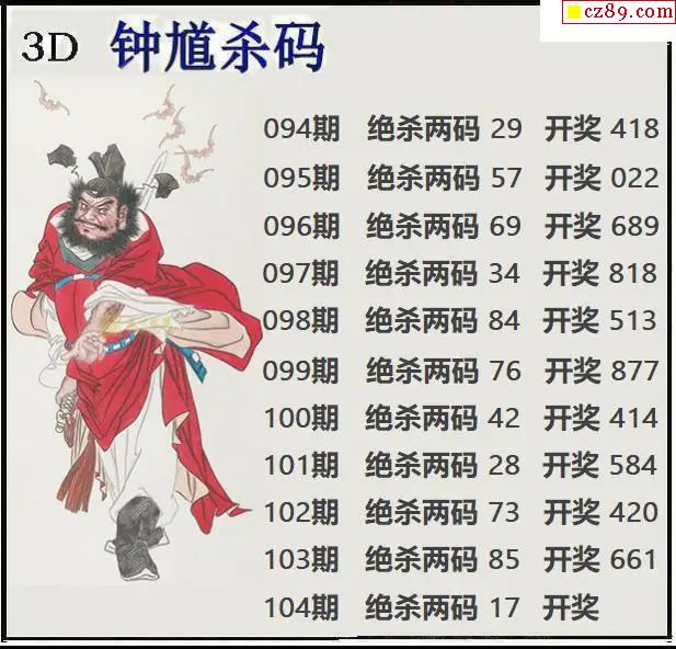 钟馗杀码2026104期3d图谜