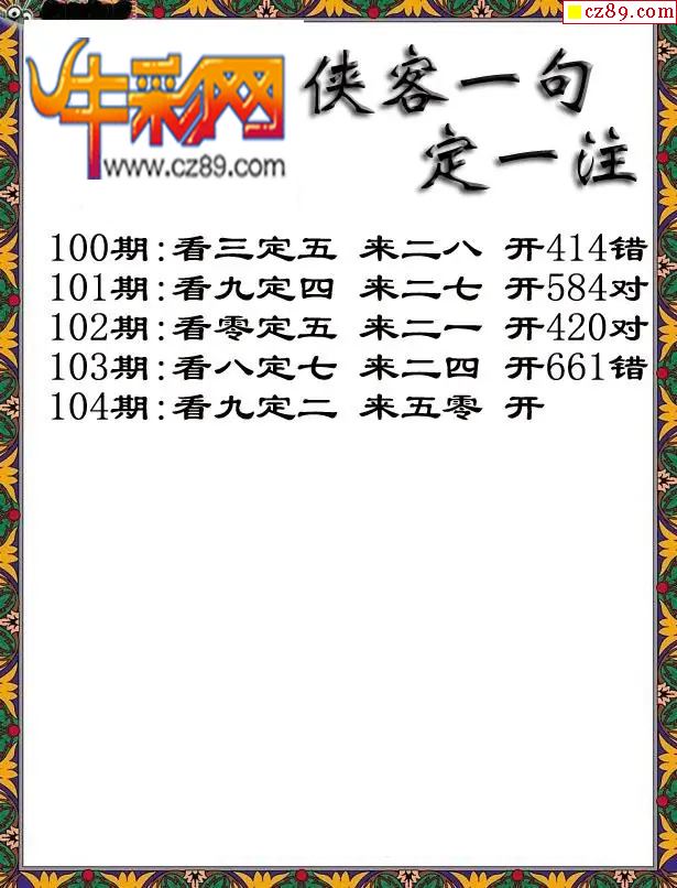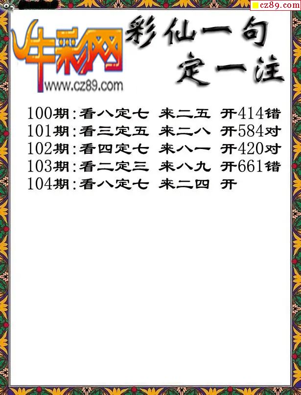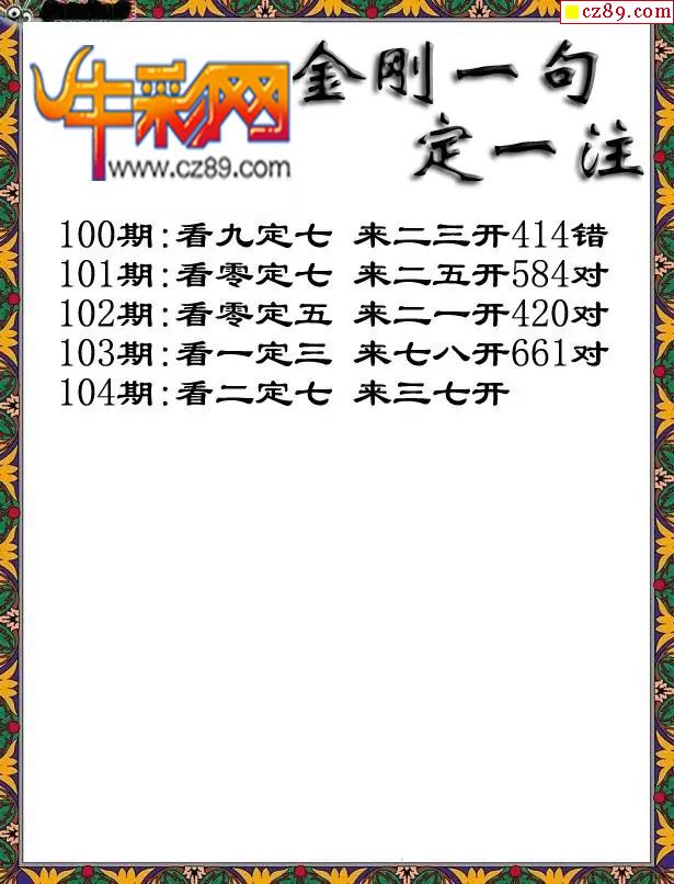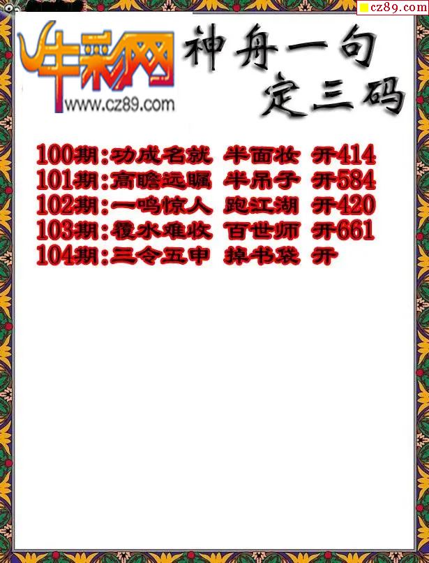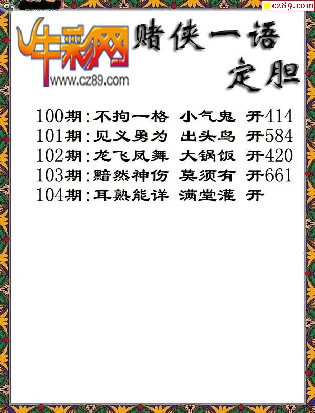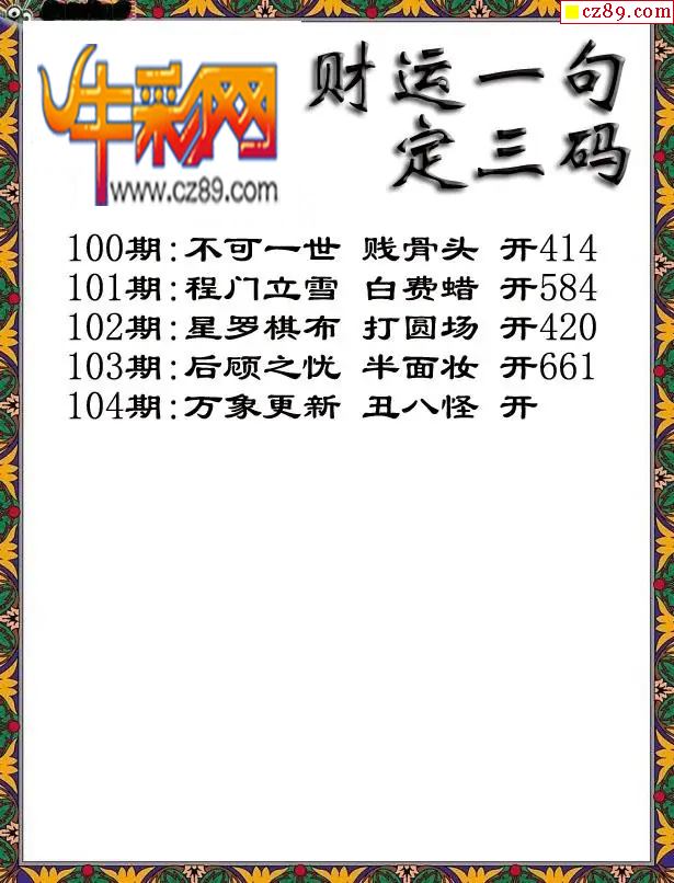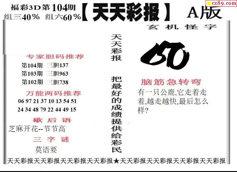 牛彩版3D字谜彩报图26年104期打印版