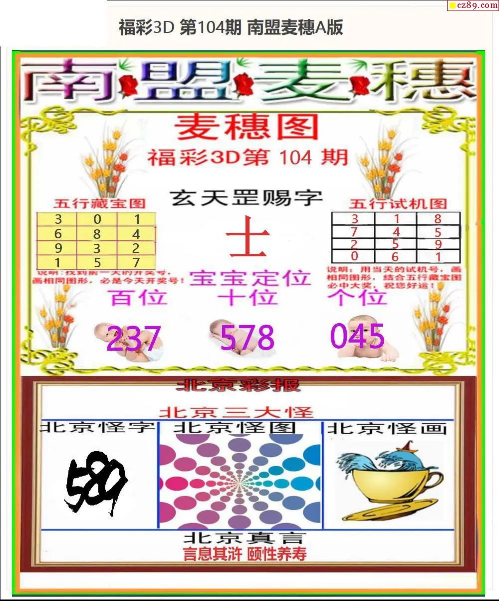 福彩3D2026104期牛彩图谜预测汇总