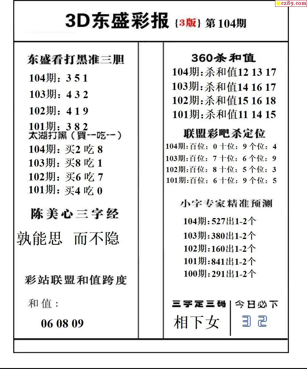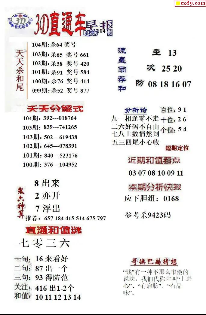 牛彩版3D预测彩报图26年104期打印版