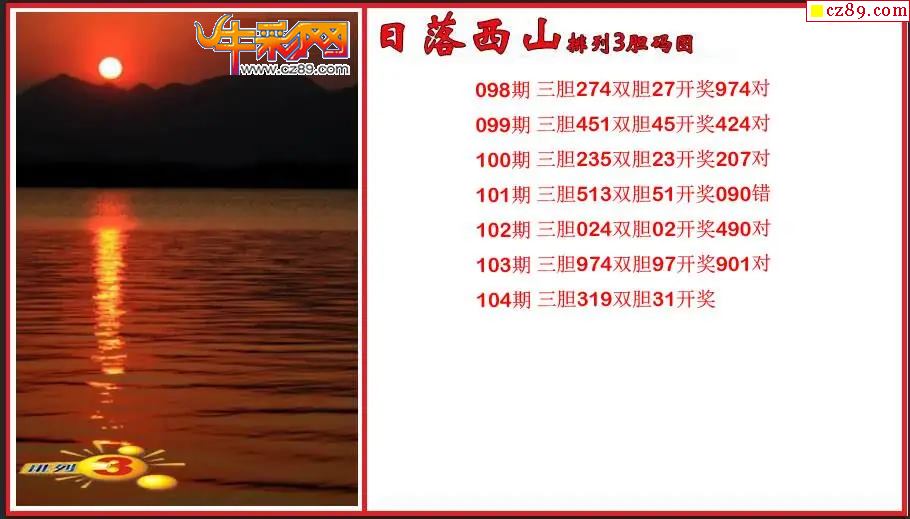 2026104期P3日落西山胆码图谜