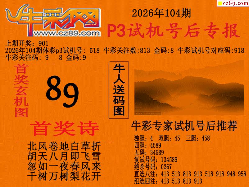 2026年105期牛彩网体彩P3画迷图谜汇总分享