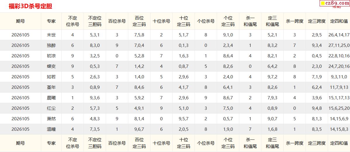 26年105期彩宝贝专家福彩3D杀号定码图表