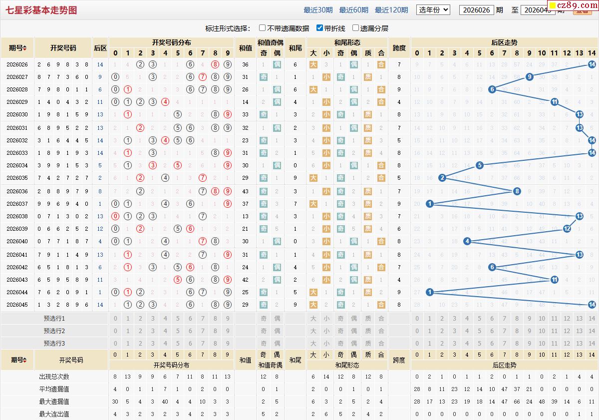 七星彩046期 彩宝贝专家直选杀号预测图表