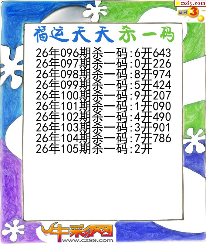 福运天天杀一码105期体彩P3图谜