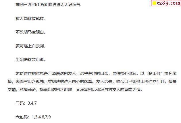 体彩排三2026年106期 武当玉女掌门一句定三码