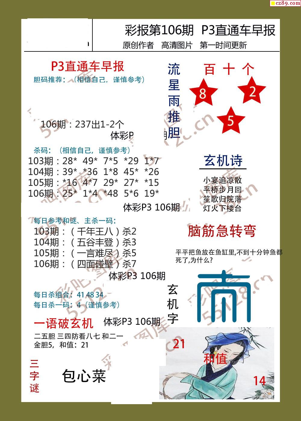 2026年106期牛彩网体彩P3画迷图谜汇总分享