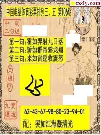 e族2026年106期体彩排列3图谜