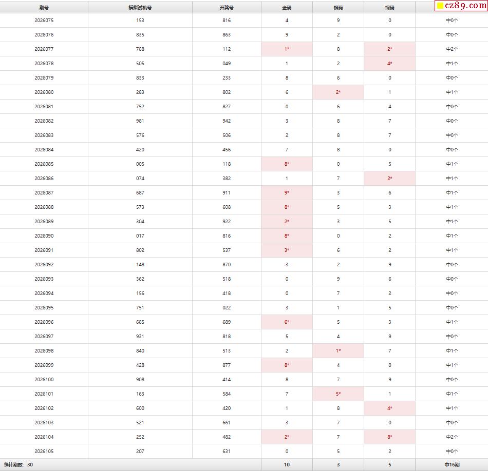 26年106期福彩3D彩神通关注码历史记录