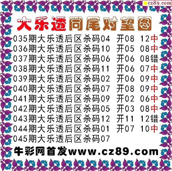 大乐透045期牛彩特邀专家前区后区杀号定胆图表