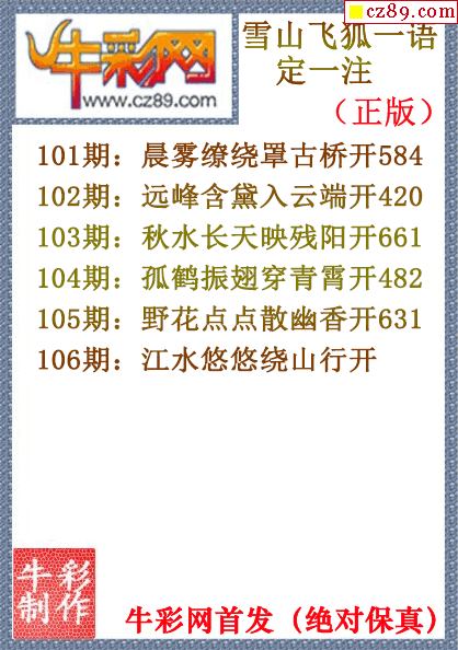 26年106期牛mo王一句定三码(原创正版)