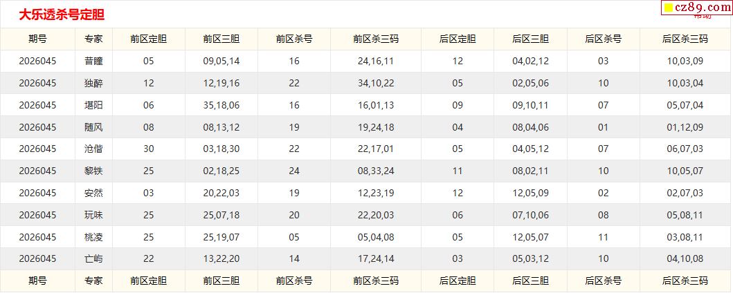 大乐透045期牛彩特邀专家前区后区杀号定胆图表