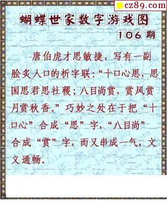 真蝴蝶世家2026106期3d图谜