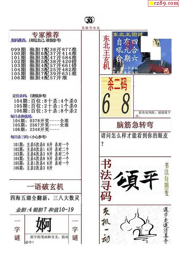 牛彩版3D字谜彩报图26年106期打印版