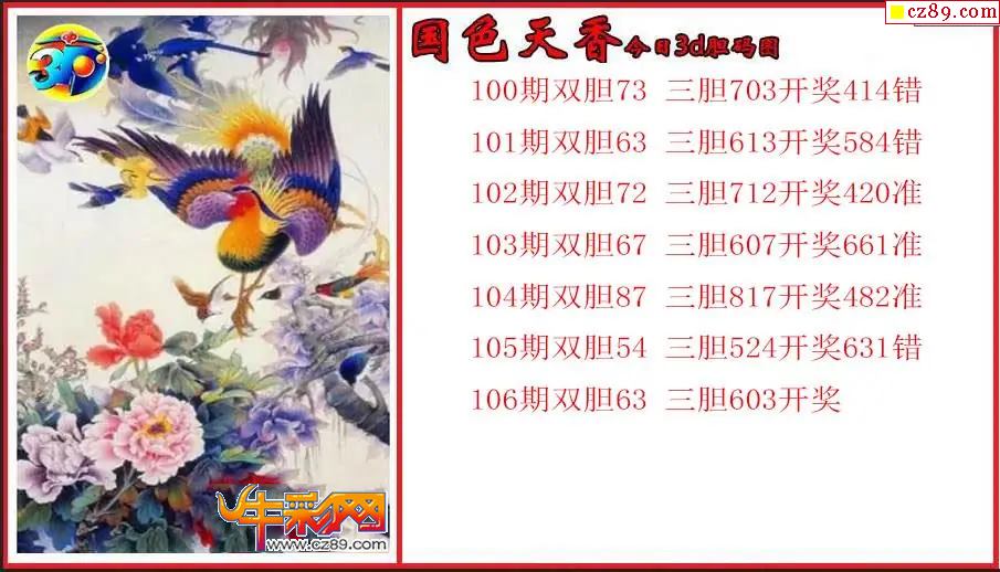 26年106期3d 国色天香今日胆码图
