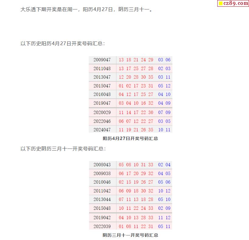 历史上的今天大乐透4月27日开奖号码汇总
