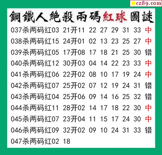 钢铁人杀两码红球047期双色球图谜 10中6