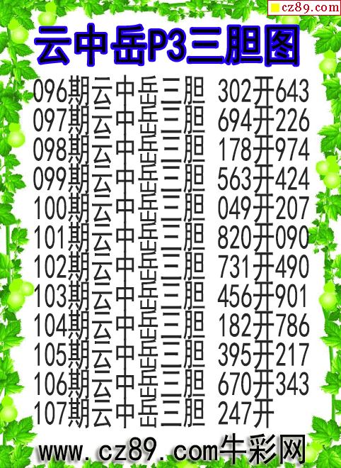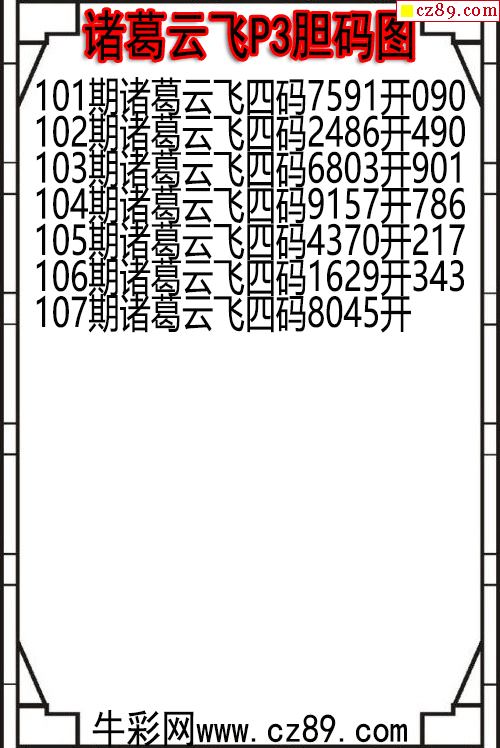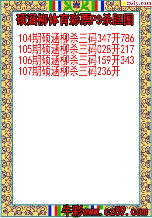 2026年107期牛彩网体彩P3画迷图谜汇总分享