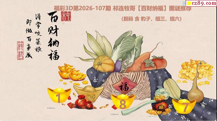 福彩3D2026107期 祁连牧哥百财纳福胆码图谜推荐
