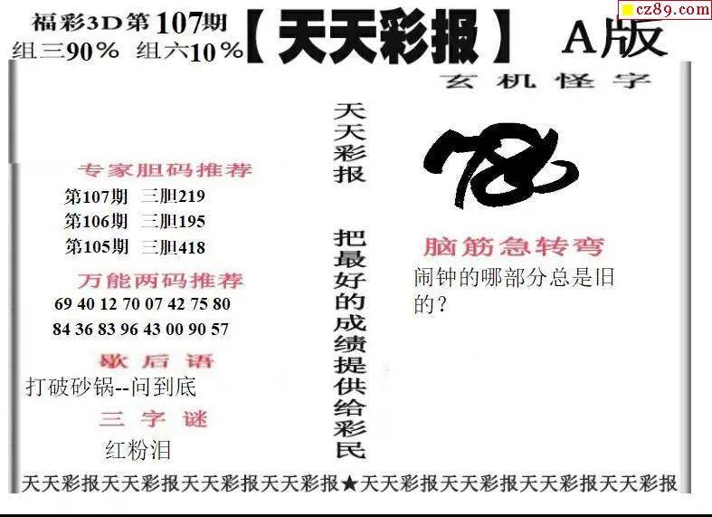 福彩3D2026107期天天彩报A版 天天彩报B版
