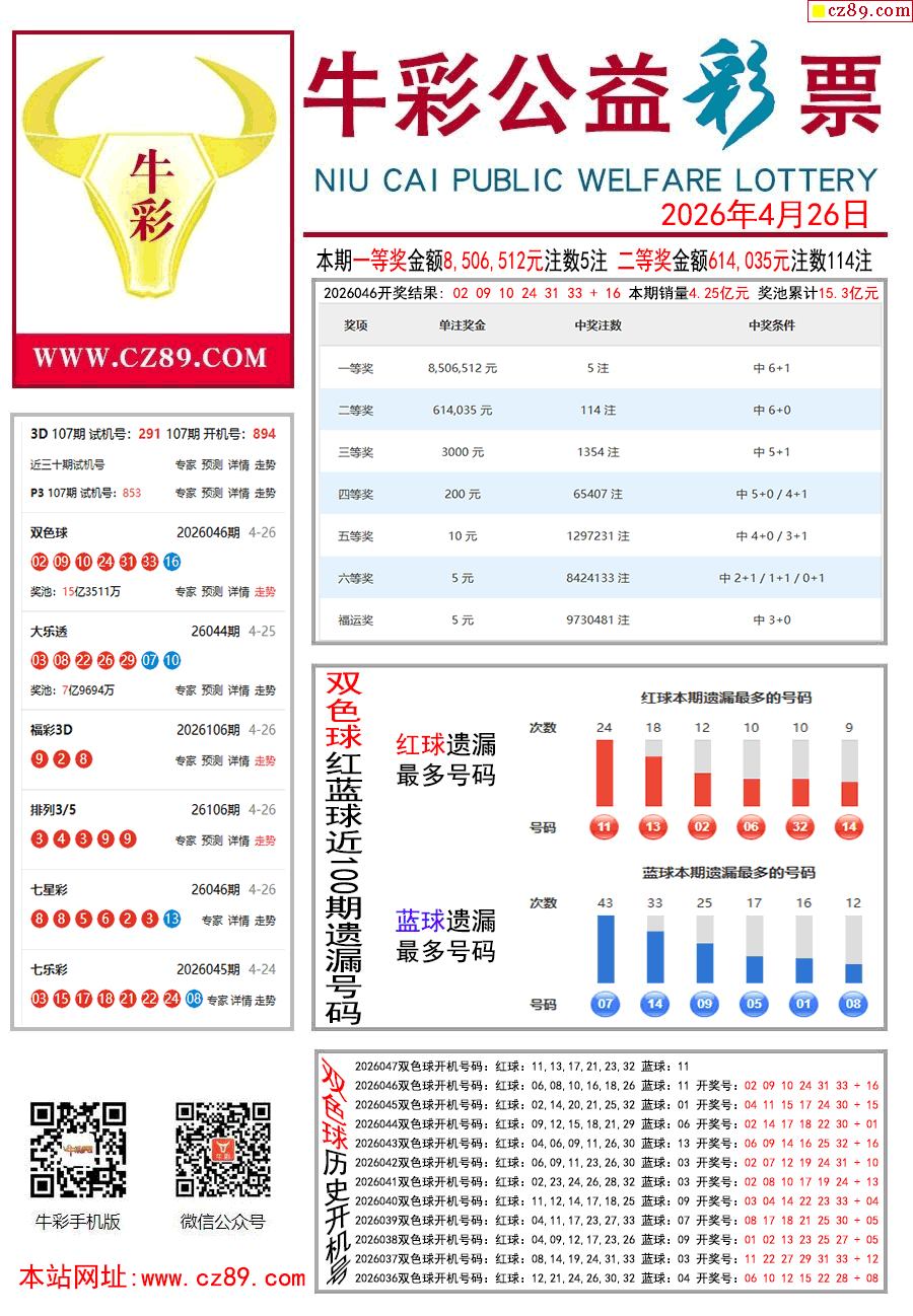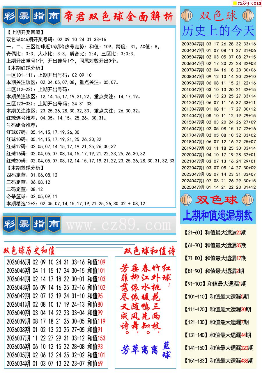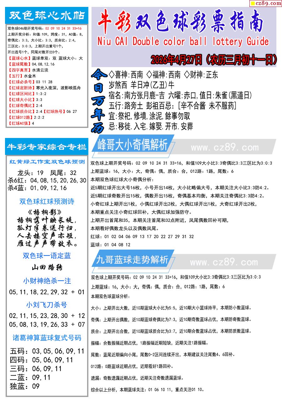 26年047期双色球彩票指南【牛彩版】