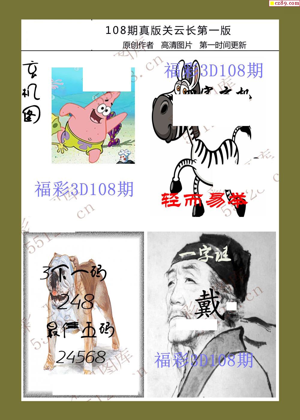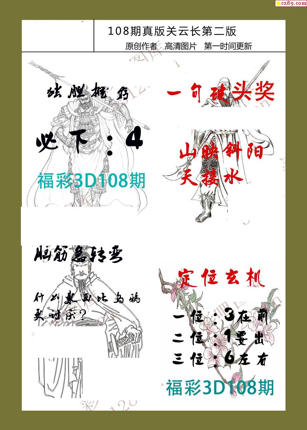 26年108期福彩3d真版关云长图谜