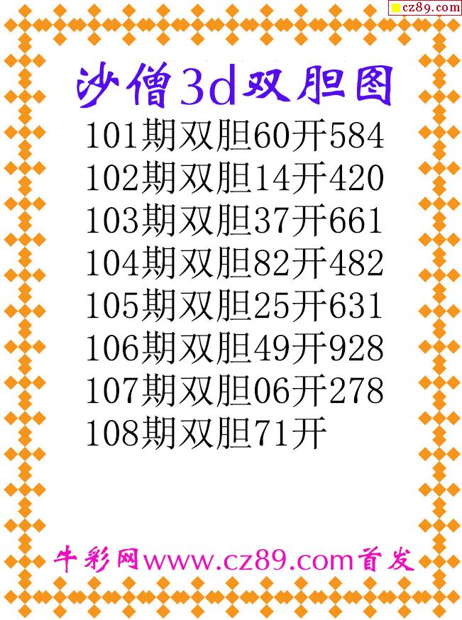 沙僧双胆26108期3d原创图谜