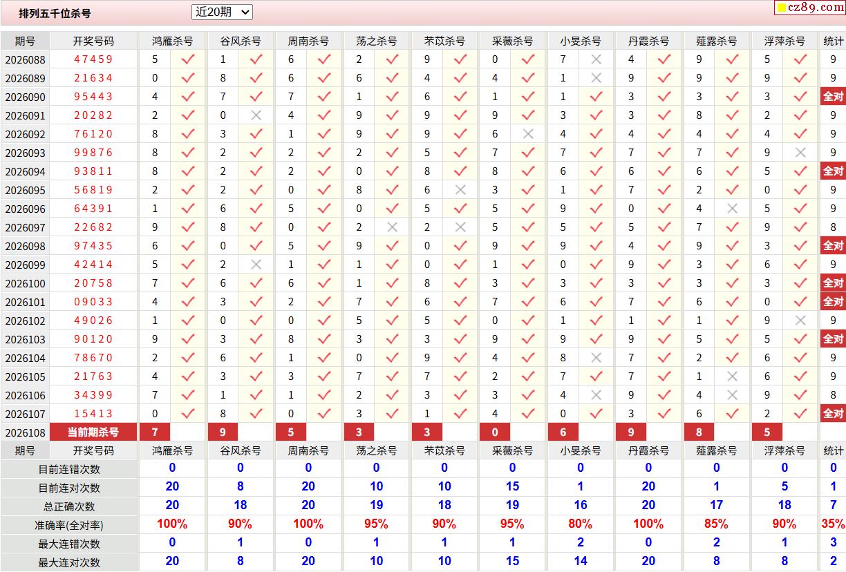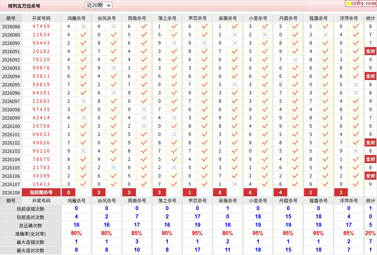 26年108期彩宝贝专家体彩P3杀号定码图表