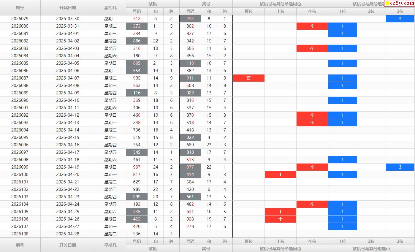 第109期福彩3D历史同期对比