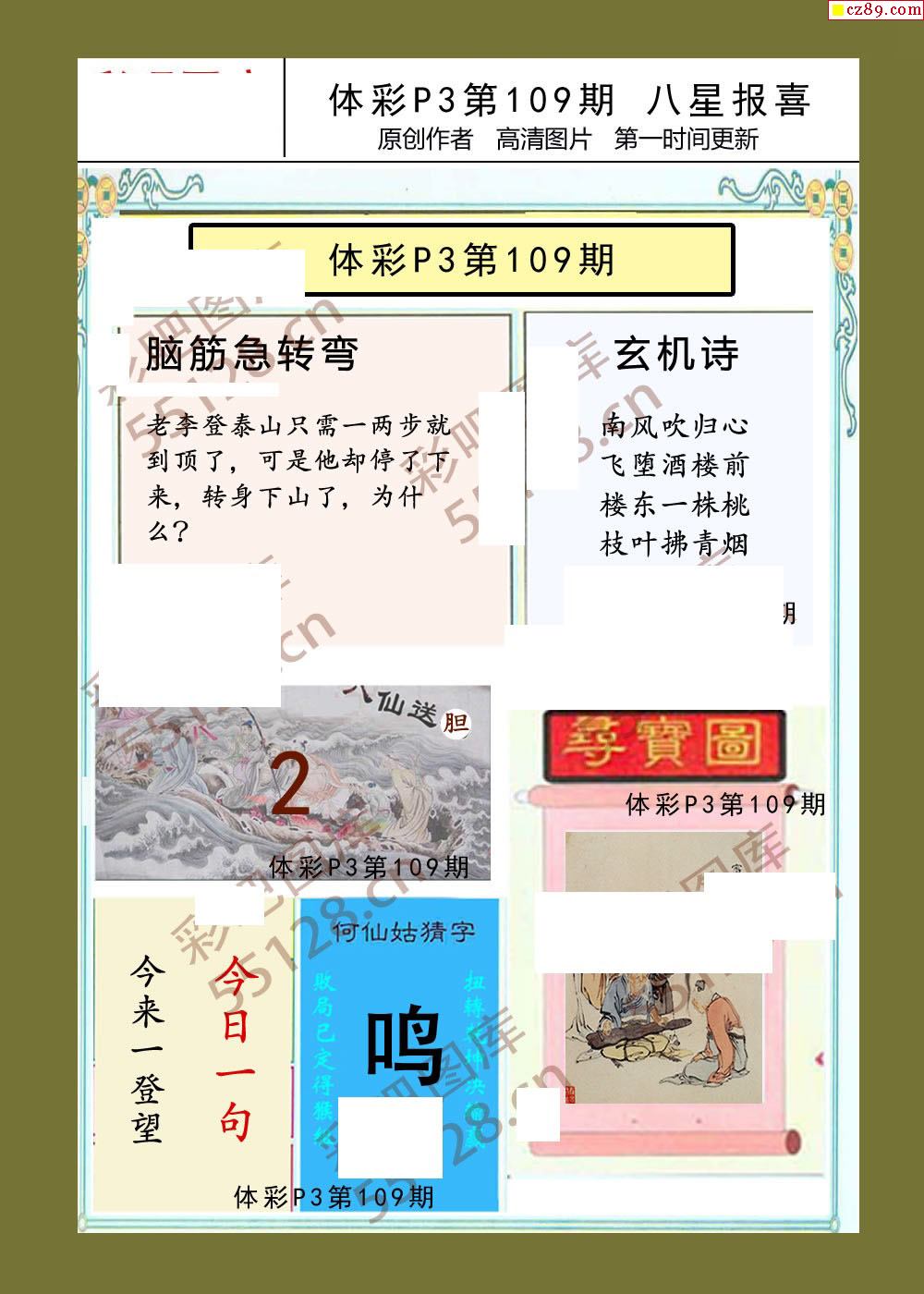 2026年109期牛彩网体彩P3画迷图谜汇总分享